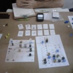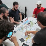 Jogo comentando exaustivamente nos últimos meses aqui no blog. Afinal, foi meu primeiro jogo publicado e passou bastante tempo nesse processo. Então, se você perdeu, dê uma olhadinha no Diário do Designer (Parte 1 e 2). Fato curioso é que Distrito 6 foi um jogo que deu certo muito rápido, ao menos comparando com meus demais projetos. A ideia meio que nasceu derivando ideias do Ciberguerrilha e foi se moldando de uma maneira bem natural. De longe, Distrito 6 foi o jogo que mais investi tempo com gráficos e foi meu primeiro Euro Game finalizado. Muito orgulho de ter finalizado esse jogo, pois acho que conseguir criar algo com uma certa elegância, fácil de ensinar/aprender e com alguma curva de aprendizado interessante do ponto de vista estratégico. Esse danado concorreu em dois concursos nacionais e foi semi-finalista nos dois. Observando agora quando iniciei e terminei, dá para ver que um ano é tempo o suficiente para criar um jogo “grande” do começo ao fim, realizar todos os tipos de Playtests e balanceá-lo. A experiência conta muito para essa agilidade. Com o tempo, eu comecei e diminuir bastante o tempo necessário para finalizar um projeto. E além do tempo diminuir, acredito que a qualidade aumentou consideravelmente. Então, meu primeiro jogo a ser publicado foi meu sexto criado. Em termos de aprendizado, também veio mais uma carga aqui. Acho que Distrito 6 foi o jogo que mais apareceu para exemplificar a coluna Escrevendo as Regras, pois foi meu primeiro jogo que eu entreguei uma cópia (a minha mesmo) para outras pessoas poderem realizar Blind Playtest. Se você nunca fez isso, faça. É uma experiência de aprendizado incrível. Com certeza foi o manual que mais me esmerei até hoje.