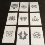 Tema interessante, né? Sendo que para isso sair demorou. Acho, inclusive, que esse foi o jogo que mais ficou com ideia no forno. Tudo começou em 1º de Dezembro de 2016, mas era apenas a ideia de criar um jogo usando imagens no estilo do teste de Rorschach. Depois de 6 meses com a ideia no ar, em Junho de 2017, eu tive a ideia de inserir letras para servir de restrição para as dicas que os jogadores dariam. Ainda estava tudo muito no mundo das ideias. Com o desenvolvimento de tantas outras coisas em 2017, eu deixei a ideia parada. Eram muitos jogos sendo finalizados e desenvolvidos para de fato começar algum novo. A ideia foi maturando e, finalmente, em 11 de Maio de 2018 veio tudo de uma vez. Sem brincadeira, foi coisa de uma semana para ter o conceito, protótipo e testar. Acho que a ideia ficou adormecida por tanto tempo que veio praticamente pronta. O jogo sofreu alguns ajustes durante os testes e eu dei ele por finalizado, pois não via outras maneiras dele evoluir usando aquela estruturação. Eventualmente, eu retomaria a ideia mas seria para criar jogos completamente diferentes.
