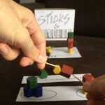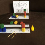 Esse foi mais um dos projetos que entrou na onda de criar jogos rápidos, simples e fáceis. Foi o primeiro jogo que fugi da premissa Tema ou Mecânica e parti da premissa Componentes. Eu já tinha ouvido Game Designers falarem nisso, mas nunca tinha feito até esse momento. Eu comprei um jogo por um preço bem baratinho mas com componentes excelentes. Tão excelentes, que apesar de ser um Euro Game, eu consegui criar um jogo de Destreza! Depois de testar e o jogo realmente funcionar belamente em um evento, eu considerei Sticks & Stones finalizado. Entretanto, eu mais algumas ideias para inserir no jogo e que não coloquei por conta da correria nas criações e por conta do Grande Hiato.
